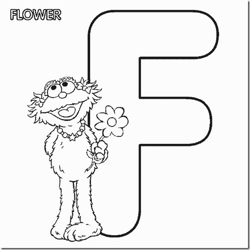 Letras con personajes de Sesame Street para colorear. Letras mayúsculas para aprender abecedario en ingés y colorear